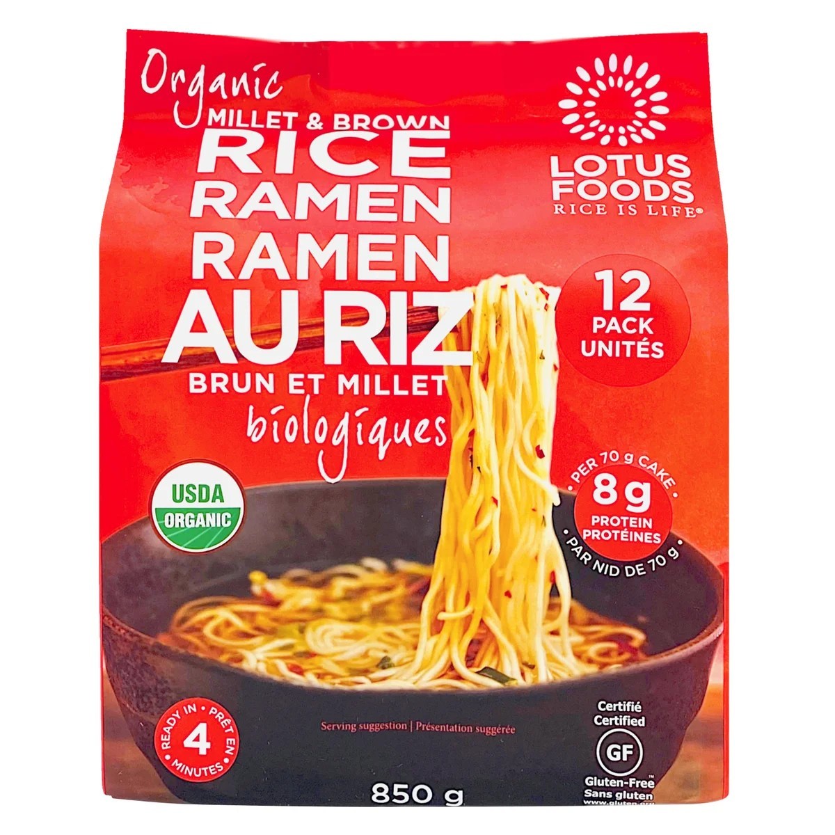 Lotus Foods brings you gluten-free Millet & Brown Rice Ramen, traditional Japanese-style noodles made from whole grains. Contains 87% organic ingredients.